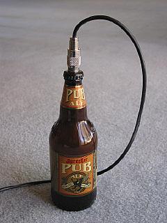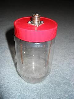 Eu não me recordo quando aprendi sobre isso, mas tenho certeza de que esta idéia vem de muito, muito tempo atrás. Eu construi minhas primeiras cargas fantasmas de água salgada quando eu era um novato no radioamadorismo, pelos anos 80. Eu as construi utilizando pequenas mamadeiras e também pequenos frascos de picles. O tamanho (volume de água) determinará quantos Watts a carga irá dissipar antes da água esquentar demais. Eu descobri da maneira mais difícil que recipientes de vidro estouram quando a água fica *muito* quente e recipientes plásticos ficam moles. Então, tenha isto em mente quando dimensionar seu recipiente para sua versão.