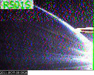 A baixa qualidade da imagem se deve ao fato do satélite estar com baixa elevação nesta rápida passagem das 0926 UTC do dia 08 de novembro, e pelo QRM gerado pela rede de distribuição de energia elétrica. A freqüência da transmissão SSTV era 145,950 MHz.