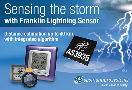 Até então, algo assim já existia, mas eram instrumentos caríssimos acomodados em caixas enormes. Mas a Austria Microsystems pretende mudar radicalmente esse cenário com seu AS3935 Franklin Lightning Sensor IC. Foi nomeado de (Benjamin) Franklin por causa de seus experimentos com raios, é claro. Dizem que é o primeiro circuito integrado para executar esta função. Trata-se de um componente pequeno, de baixa potência, que em conjunto com uns poucos circuitos passivos e um microcontrolador para interface de gerenciamento, permitirá detectar relâmpagos. Ele poderá ser implementado em instrumentos de alerta pessoais, em GPS, em instalações de redes inteligentes e sistemas de energia.