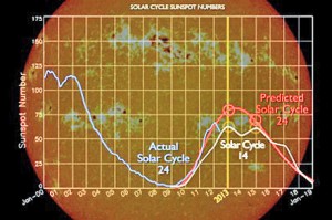 Pesnell notou similaridades entre o atual e o Ciclo Solar 14, que ocorreu entre 1902 e 1913, que também apresentou um pico duplo. Se esses dois ciclos forem realmente “primos”, ele diz que isso poderia significar um pico no final de 2013 e outro em 2015.