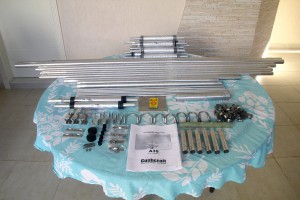 No total são 25 tubos de alumínio em várias medidas, 12 traps (finalmente com respiros para evaporar a umidade), vários parafusos e porcas, 8 ponteiras plásticas, uma chapa grossa de alumínio para fixação no mastro, 7 abraçadeiras em formato de U, um tubo em fibra de vidro, 34 abraçaderias em inox e um manual de instruções.