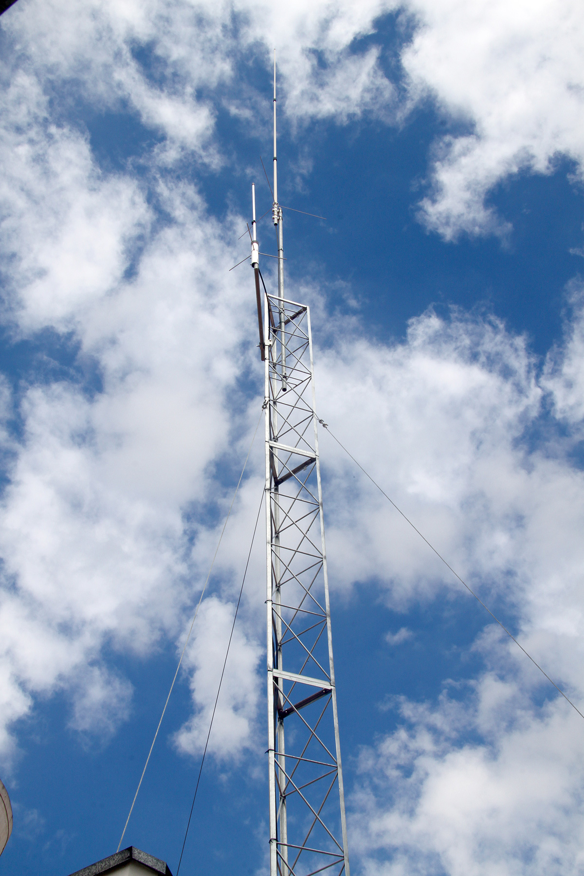 Fiz algumas fotos da torre do Junior, PU2LAA, que já está em operação (vide fotos abaixo). Achei muito bem construida e gostei do preço. Um detalhe que percebi na instalação do Junior foi o capricho do aterramento com centelhadores. Ele ainda está finalizando a instalação, e assim que pronta, postarei aqui algumas fotos.