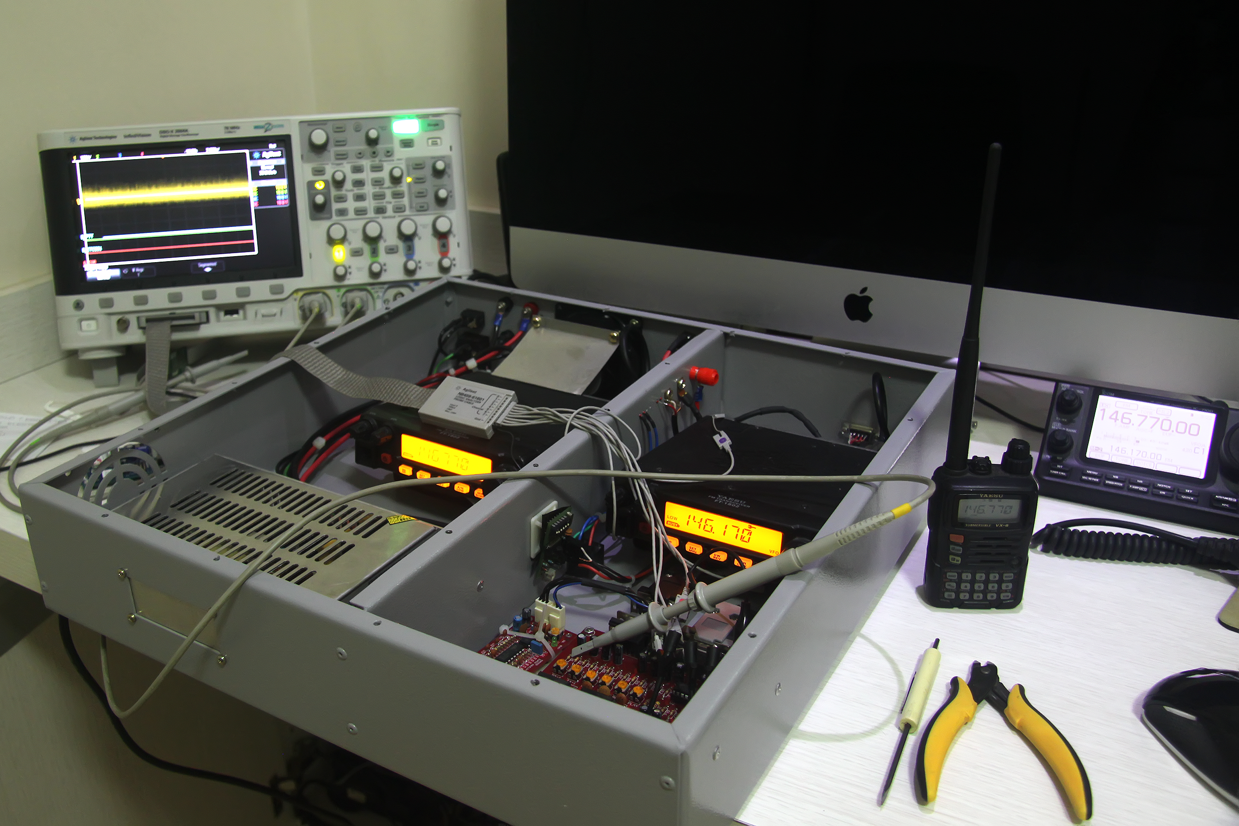 PY2KJZ (146.770MHz subtom 74.4Hz) de Americana volta ao ar após substituição de gabinete. O PU2LAA desenhou um novo gabinete 19″ que será padrão para as repetidoras do CRAM. Já montou esse primeiro e ficou muito bom com TX e RX em compartimentos separados para melhor isolação de RF. Resolvi também um bug que havia no decodificador de subtom e agora não ficará mais disparando como ocorria.