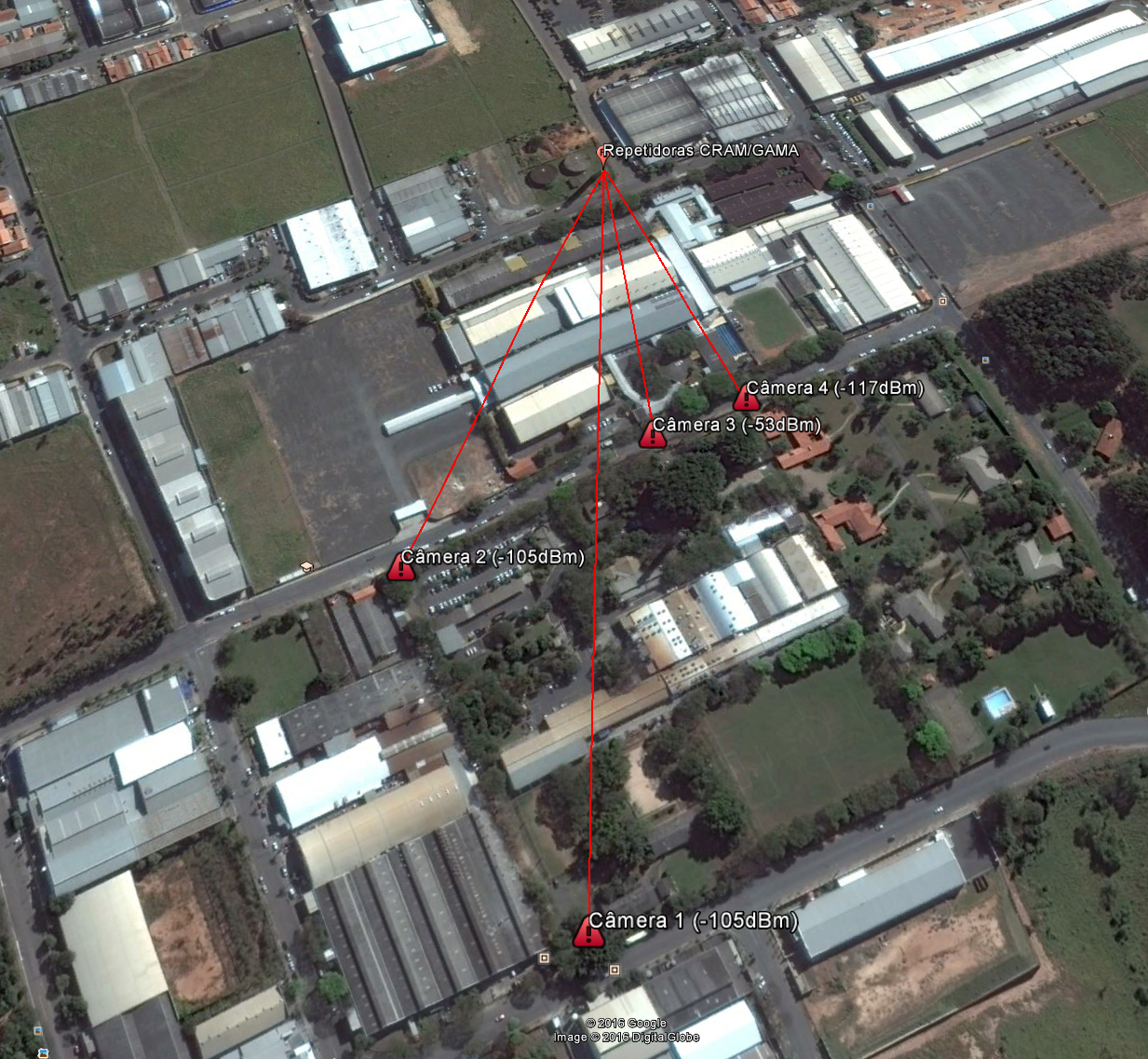 Identificamos rapidamente que o sinal se originava nas dependências de uma empresa localizada a apenas 200m de nossa antena. Trata-se de uma empresa relativamente grande, com área superior a 50.000m2 segundo o Google Earth. A princípio, de cima da caixa d´água, não conseguimos identificar com precisão de onde exatamente vinha o sinal. Ele parecia um pouco difuso. Já usamos várias vezes essa antena direcional portátil em caças a raposa e seu comportamento parecia bem mais diretivo que naquelas ocasiões.