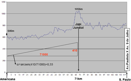 Fig. 4 – Perfil Topográfico entre Americana e São Paulo