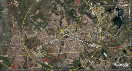 A otimização para curta distância segue o mesmo princípio. Com o auxílio do Google Earth fazemos o levantamento da região urbana e suburbana de Americana e traçamos um circulo com raio suficiente para cobrir essa região.