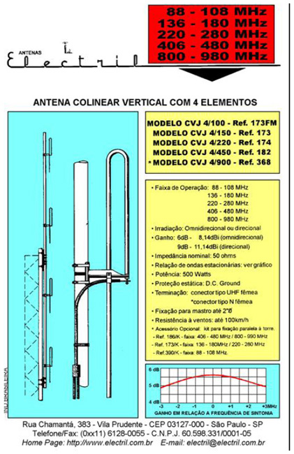 Informações Técnicas da Antena Electril CVJ 4/450